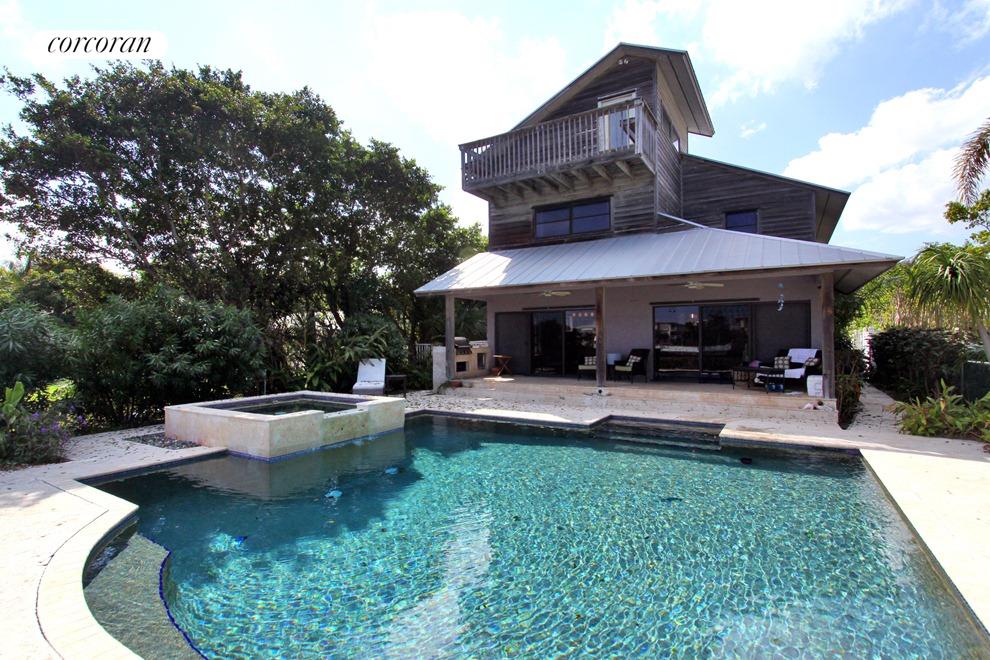 Approved short sale! Great opportunity for waterfront living on Hypoluxo Island. Beautifully renovated with custom finishes throughout. Located on protected waterway with ocean access. Great outdoor living w/dock, pool, spa & loggia. Totally renovated including custom kitchen w/granite, stainless appliances & wood cabinets, banquet overlooking the Intracoastal. Formal living room has fireplace & arched windows. Family/dining has built-in wall unit, slate floors & opens to the loggia. 2nd floor master suite has his & hers closets, hardwood floors, luxurious bath and loft/widows peak with panoramic water views. Additional features include metal roof, cedar siding, native trees, cabana bath, large utility room, pebble tec pool & spa, office, courtyard & loggia. Beautiful, private pool area idea for entertaining. Stroll to beach, parks, restaurants & shops. Atlantic Ocean 3 blocks. Situated between Palm Beach and Delray Beach.